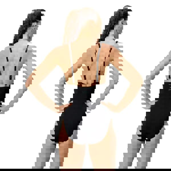 Engineered for regular swimmers, this Speedo V-Neck swimsuit in solid black, combines performance with everyday wearability. The soft jersey construction delivers exceptional comfort whilst its quick-dry properties keep you feeling fresh throughout your swim. Built with 83% recycled polyester and 17% elastane, the fabric provides superior stretch and maintains its integrity against chlorine exposure and pilling. Adjustable straps allow you to customise your fit, whilst the integrated underbust elastic offers gentle support. Removable soft cups provide additional coverage options, making this a versatile choice for consistent pool use.