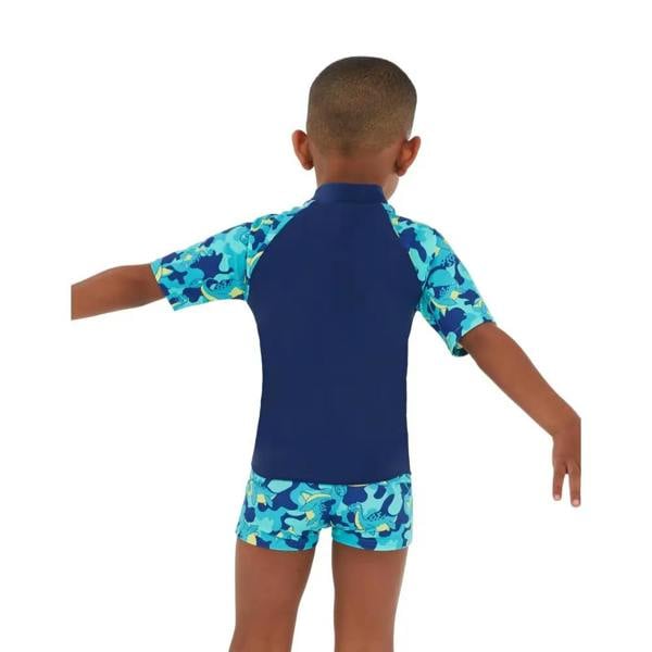 The Tots Boys Printed Sun Protection Set from Speedo is an ideal short sleeve rash top and shorts set for little ones designed with the Plesiosaurus character and colourful prints. The pull-on rash top offers great coverage for shoulders, tummy, and back with SPF 40+ UV protection. Made from Speedo's Endurance10 fabric containing Creora HighClo, this swimwear is highly chlorine resistant and lasts longer.