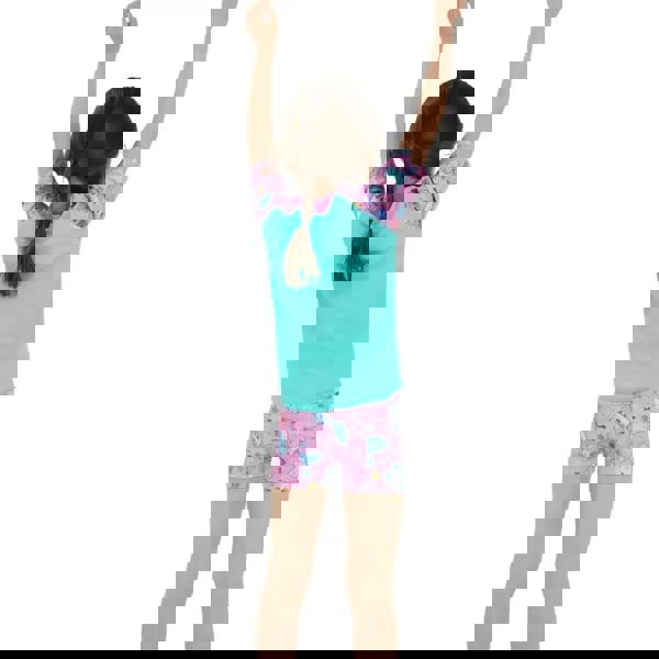 The Tots Girls Printed Sun Protection Set from Speedo is a two-piece pull-on shorts and t-shirt combo. The rash top offers UPF 40+ sun protection and coverage of shoulders, tummy, and back and features a vibrant mermaid motif, that appeals to your little one’s creativity, with matching shorts. Perfect for days in the sun by the pool or beach. Made from Endurance 10 fabric with Creora HighClo technology for enhanced fit retention, this soft and stretchy swimwear allows for free movement.