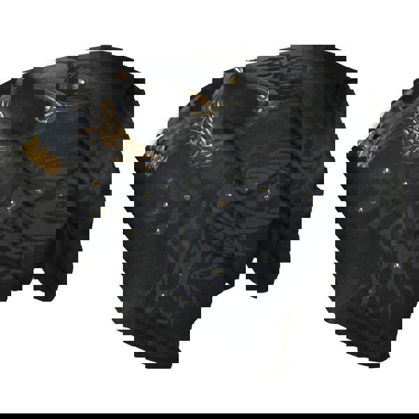 The ink-black pallor of midnight envelopes a skull in the darkness, accentuated with tribal engravings and the shimmer of molten gold. Death finds no solace in the decaying fortunes of the afterlife.