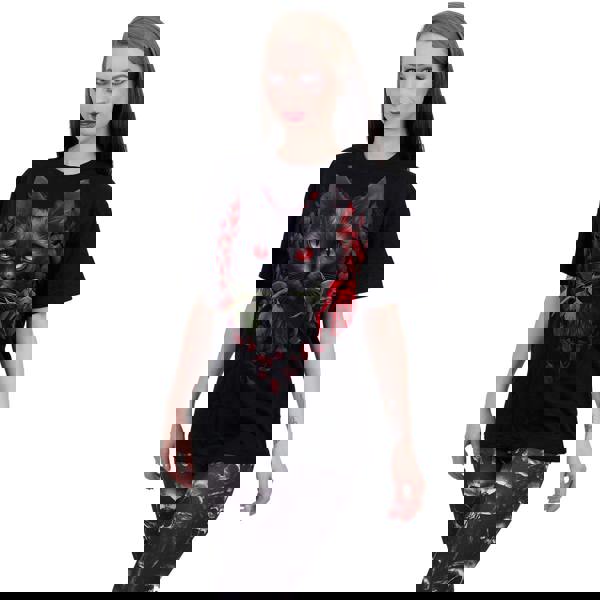 Fur anyone feline romantic, this precious design is pure purrfection. A beautiful image of a mysterious black cat with ruby eyes, surrounded by swirling red rose petals that form the shape of a love heart. A cat lover’s dream made real.