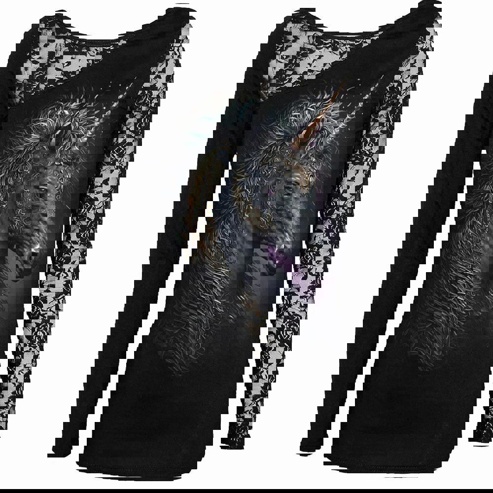Celtic Unicorn In the broken moonlight that pours through the silhouetted winter trees, a dark shape emerges, padding silently among the moss and bracken. Your quest has come to its end, and after years of searching you finally set your eyes on her…in all her majestic splendour. The mythical Unicorn, now a breathtaking reality.