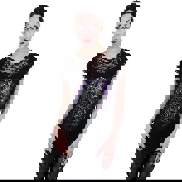 The haunting image of a cat, black as the night that surrounds her, complete with Celtic flourishes that frame her face and create a design of grandeur and serenity. Cat lovers will do well to add this beautiful garment to their collection