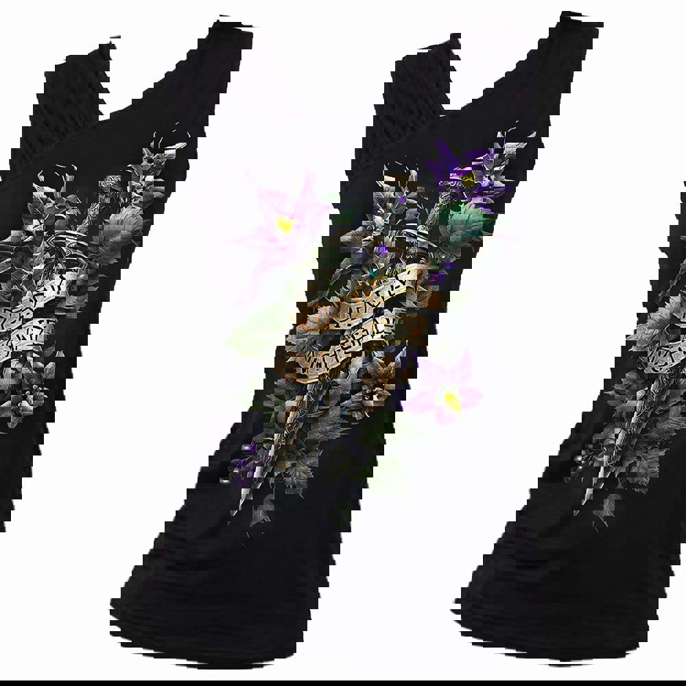 Feel your pulse race and your pupils dilate as sweet delirium takes hold. Belladonna is a wicked woman, and the toxic juice from her dark purple berries is coursing through your veins, swift as a murderous dagger to the heart. The shroud of eternal night softly lays itself to rest over your still, lifeless form like a warm blanket.