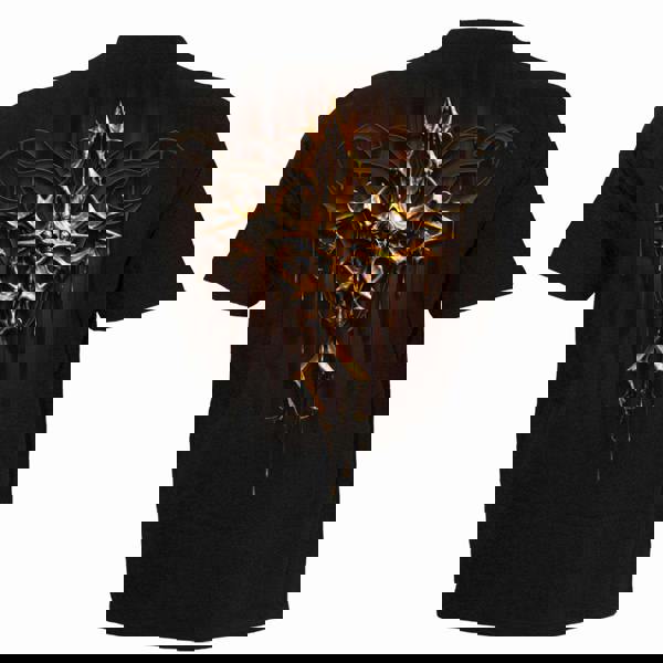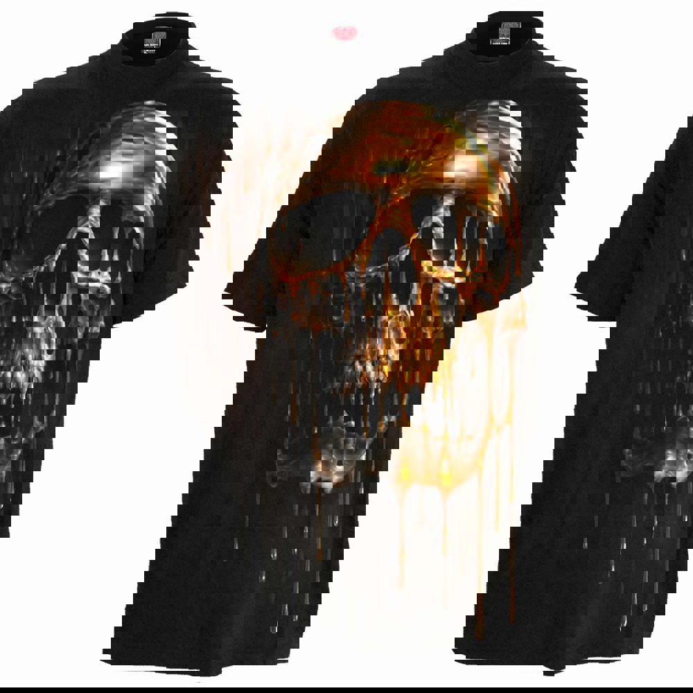 Behold this molten metal masterpiece! A skeletal smile glints through the all-encompassing gloom. Fire up the furnaces of the Underworld and pour this 24-carat terror onto your frame. Dripping Gold truly has the Midas touch.