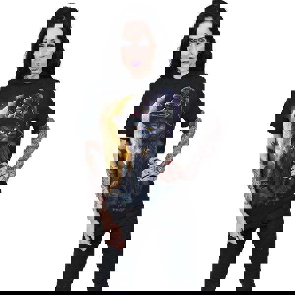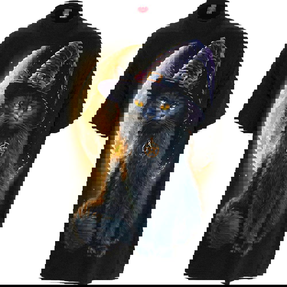 An amber moon gently lights the late autumnal night, as magic crackles in the humid air like electricity. On the blustery wind, falling crimson leaves swirl around a most unusual cat…for this quiet, ink-black cat proudly wears a witch’s hat upon its head. A sorcerer’s apprentice is at large this fateful night.