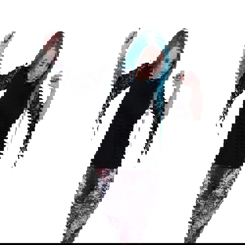 Rose Lace Sleeve Top is made of mainly 95% Viscose 5% Elastane, with 95% Polyester 5% Elastane Sleeve using skin friendly, Azo-free, Reactive dyes.