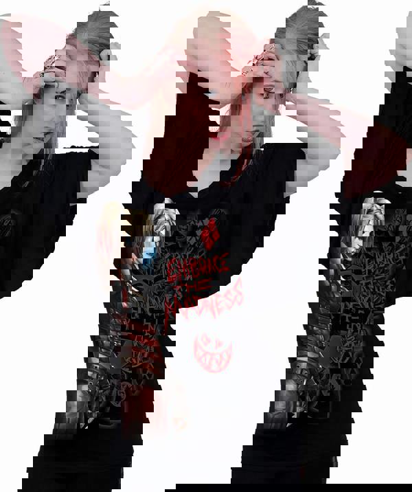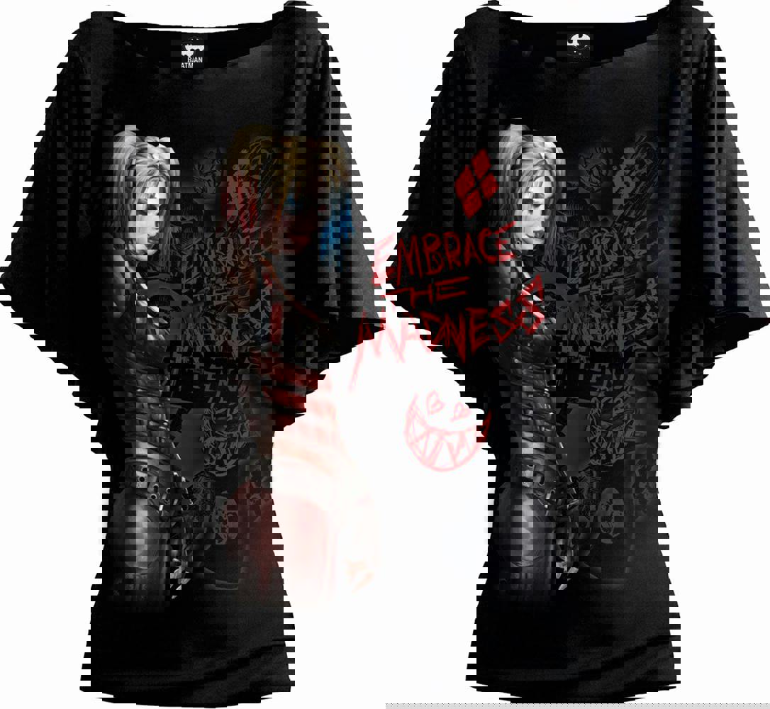 Official Licensed Product from Warner Bros. DC Comics. Harley Quinn is in love with her Puddin’, the maniacal Joker. You too can embrace the madness with this design inspired by the inmates at Arkham Asylum.