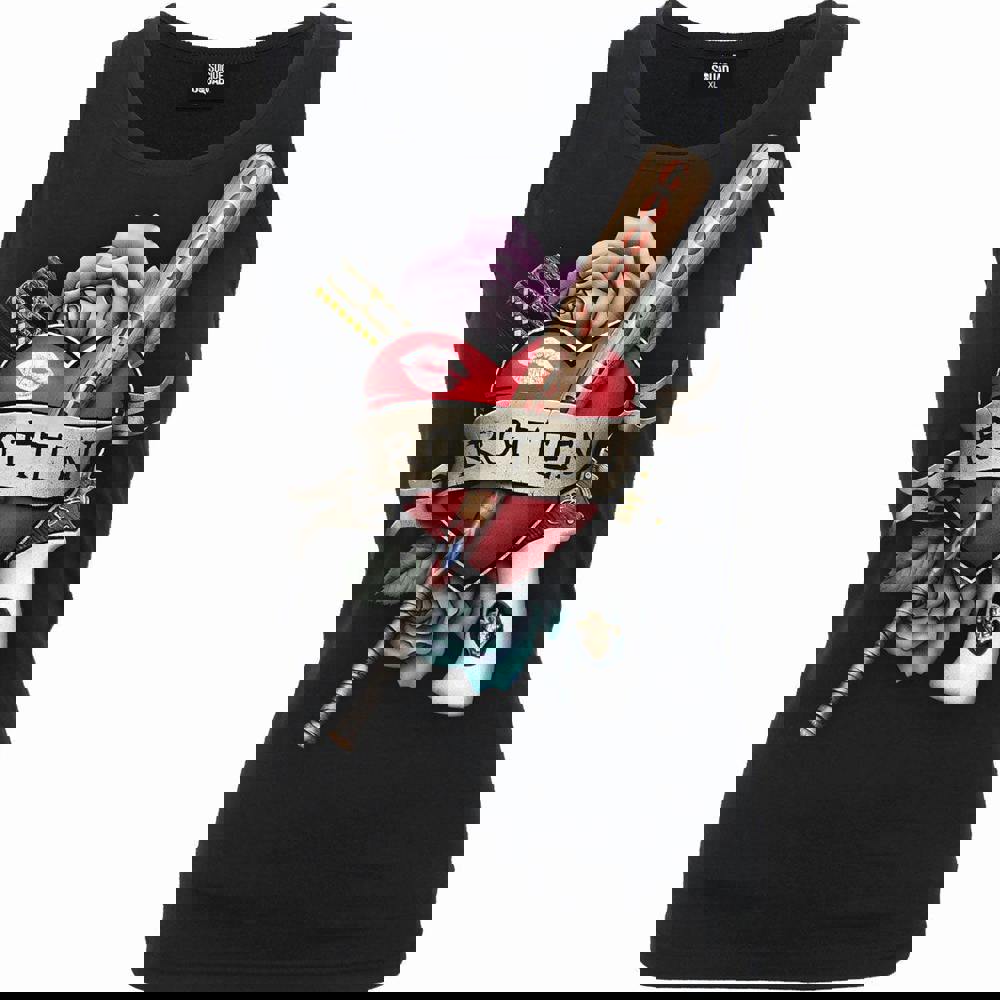Official Licensed Product from Warner Bros. DC Comics. A beautifully rendered tattoo-style heart with a very familiar baseball bat and two ombre roses in the colours of Harley’s pigtails.