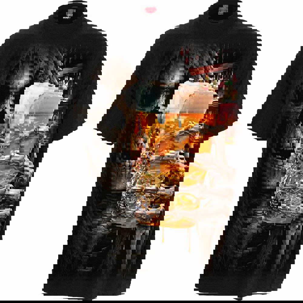 Raise a glass to the pint-sized Hellraisers of this world. Turn up the stereo and kick out the jams with this celebratory design of all things metallic with a high alcohol level. If any tee goes up to eleven it’s this one.