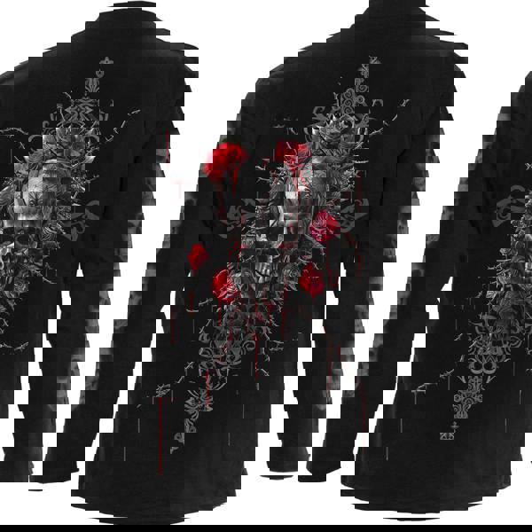 The waning façade of love’s spell withers into insignificance, as the poisonous shadows of time creep steadily into view. Where once there was hope, only the pain of loss remains. The skull in her hands, staring emptily like a weathered monument to what has passed. The storms of life have all come and gone, leaving the broken pieces of a story that had no beginning and will see no end.