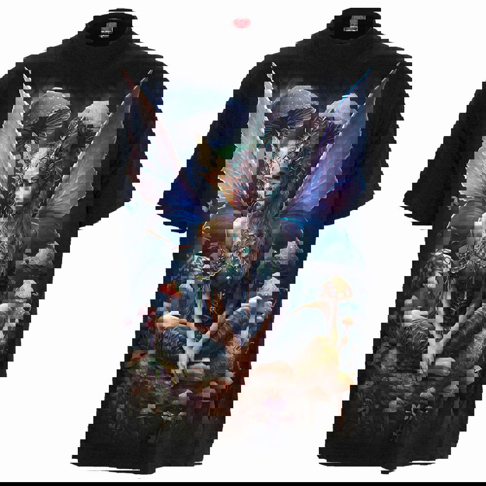 Come on a trip through the psychedelic forests of a fantastical fairy wonderland. Feel the vibrations of the earth spinning on its axis as it hurtles through space and realise that we are all connected by an invisible, warm glowing aura. This fairy queen is surrounded by mushrooms that enhance and focus her energies, making her at peace with herself and her surroundings.