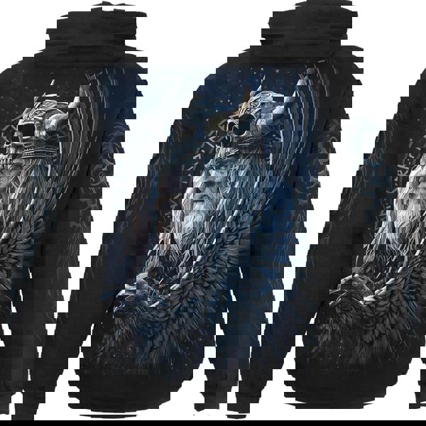 The Norse God Odin goes by many names. A ruler of both Poetry and War, he governs the Halls of Valhalla, welcoming fallen warriors who die in glorious battle. A jet-black Raven with outstretched wings watches patiently as brave souls make their journey to the hallowed table that Odin presides over in the afterlife.