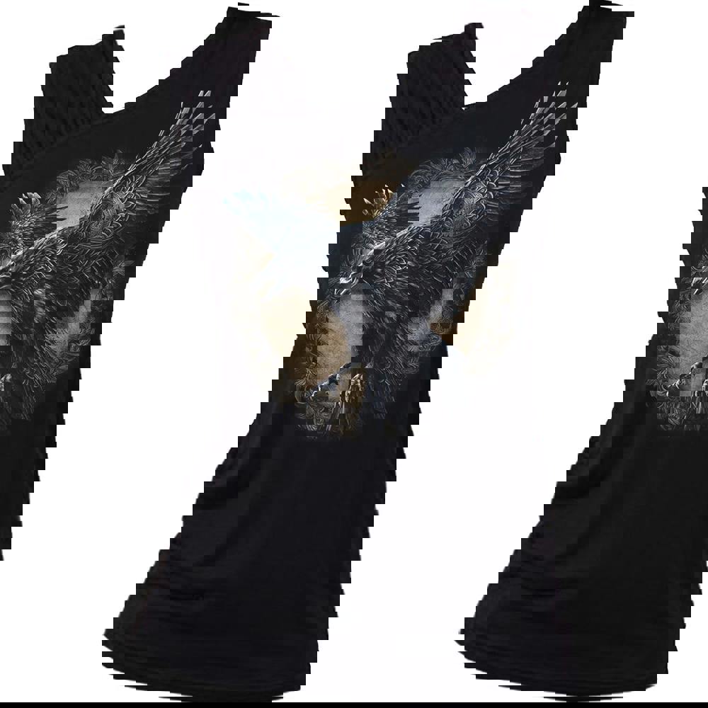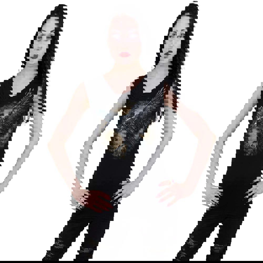 In darkness lies untapped wisdom; a knowledge that will inform your choices and decide your future within this mortal world. A beautifully rendered illustration of a Celtic raven with a distressed parchment background adorns this garment, along with the words ‘Raven Wise’. One for the truth-seekers. Gathered Shoulder Slant Vest Black is made of mainly 95% Viscose 5% Elastane, Jersey using skin friendly, Azo-free, Reactive dyes.