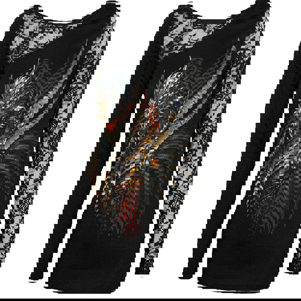 The deafening roar of internal furnaces cracking and pulsating, powering a huge, metallic behemoth. Sharpened blades of brass and chrome spin wildly as the beast’s engine heart rumbles into life, propelling it up into the blackened skies to breathe fire on its enemies. Eyes glow like pinhole stars of orange flame and with every sweep of its wings, the ground below shudders with the force. This mecha-dragon means business.