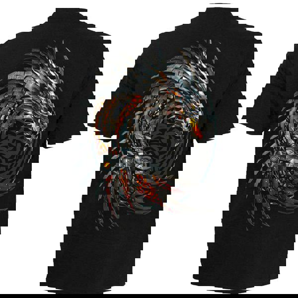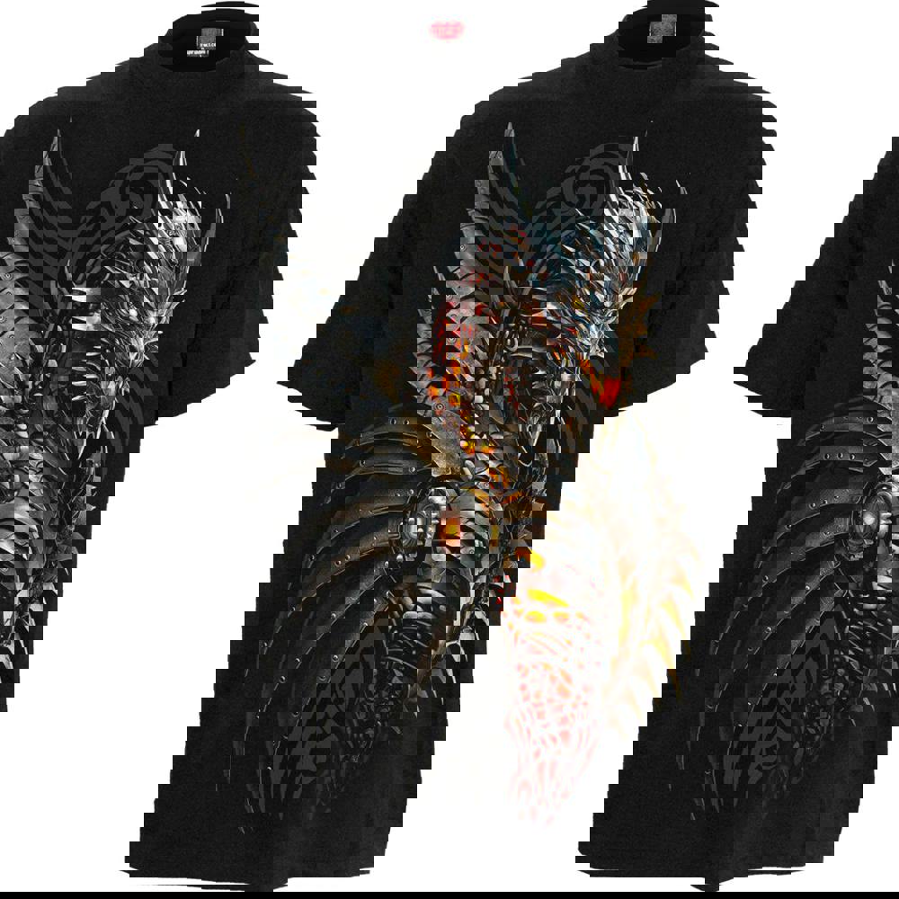 The deafening roar of internal furnaces cracking and pulsating, powering a huge, metallic behemoth. Sharpened blades of brass and chrome spin wildly as the beast’s engine heart rumbles into life, propelling it up into the blackened skies to breathe fire on its enemies. Eyes glow like pinhole stars of orange flame and with every sweep of its wings, the ground below shudders with the force. This mecha-dragon means business.