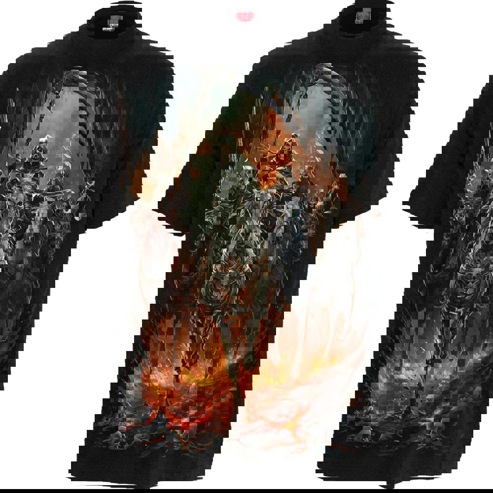 Four Horsemen emerge through the all-encompassing darkness of the night. Each messenger sits atop a horse equally as menacing as its rider. The cave at first appeared to offer some chance of escape from your fate…but now, as the roaring flames inch higher and higher, it is merely a dead-end.