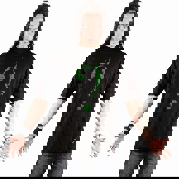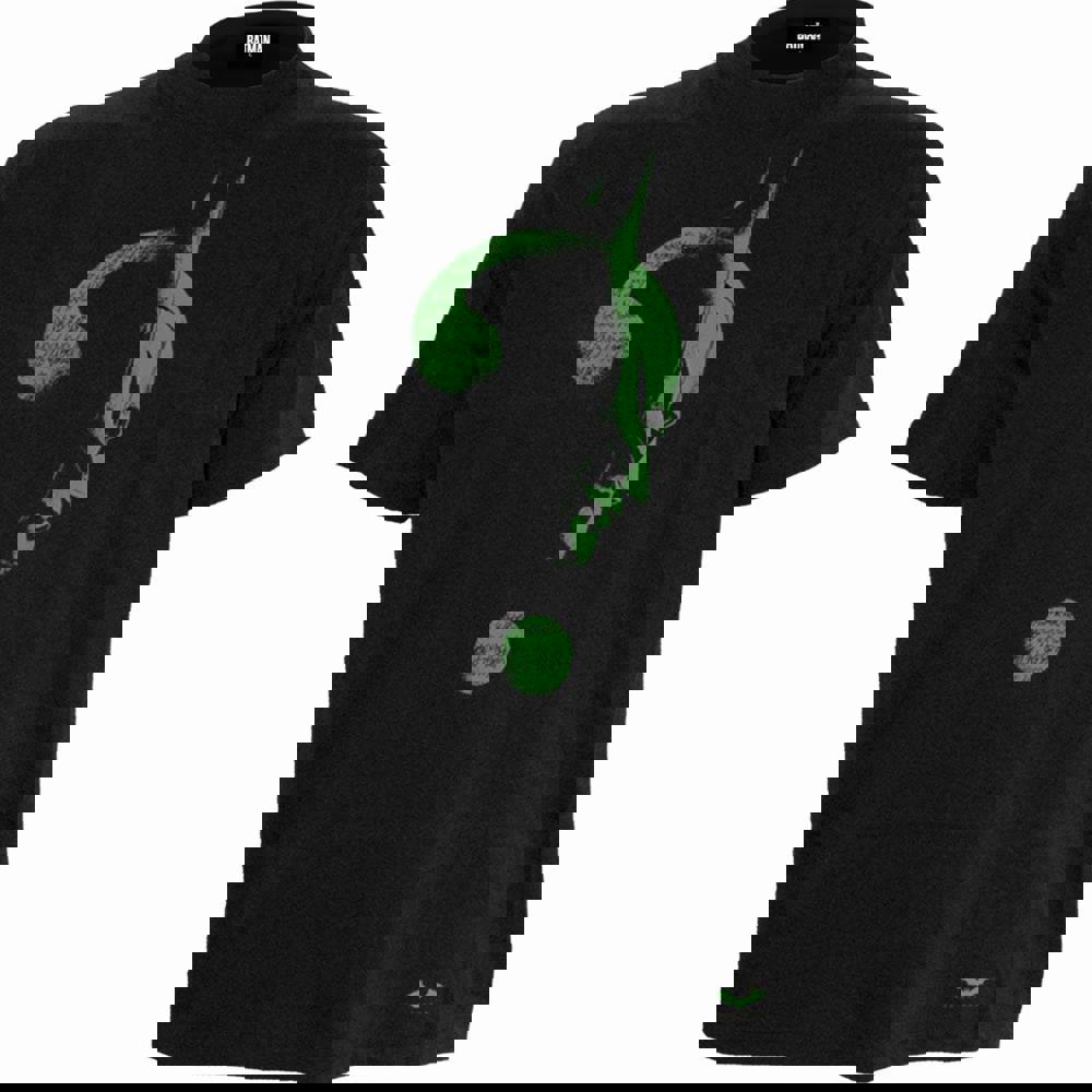 Official Licensed Product from the Warner Bros. DC Universe. The Riddler’s famous Question Mark logo, with a profile image of The Batman merged within it. Classic green print that glows in the dark for added spookiness!