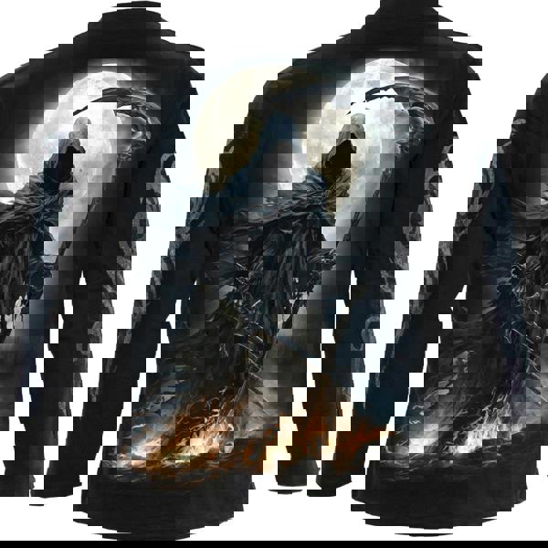 Beneath a full moon, ghostly flames lick at the feet of a messenger sent from the darkest reaches of existence. The sound of thundering hooves goes from a distant rhythm to a crescendo of terror as the rider’s demonic steed rears up. Dismounting, the faceless figure draws his blades…and the wind echoes with the final sound of the message he brings.