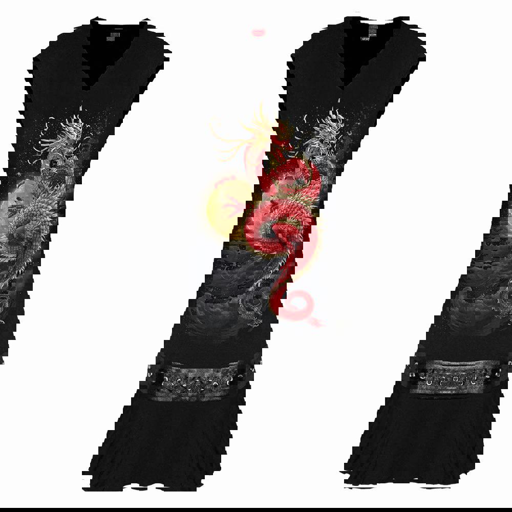 Twisting high up into the night sky, the serpentine form of Shenlong holds the spectral moon as if it was a crystal ball. His scales reflect the light, scattering it in all directions and creating the stars of the universe on the black canvas above, while the swirling clouds undulate peacefully like a misty river below.
