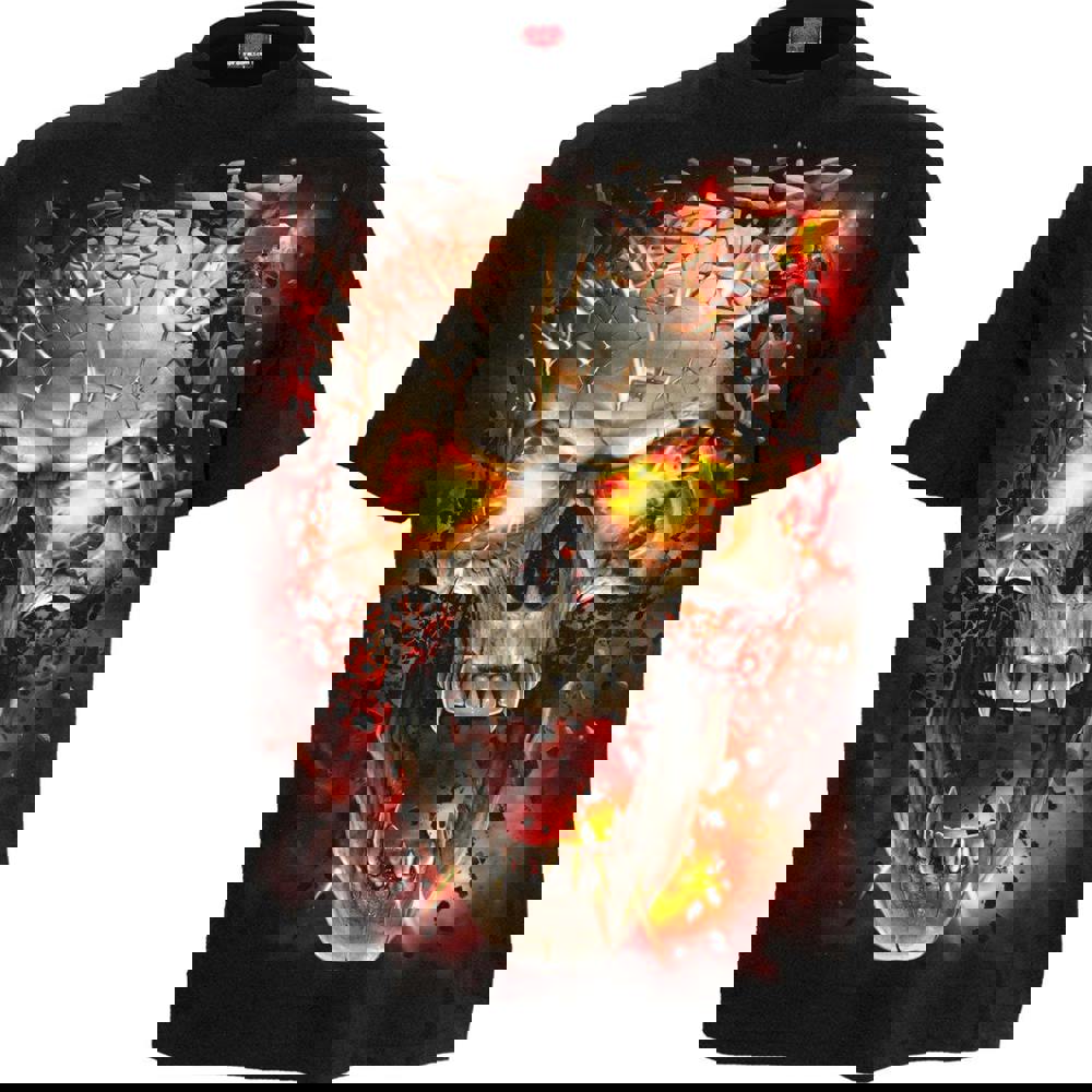 Ever feel so much pressure building up inside your brain that you’re worried it might explode? Scorching hot magma and flame erupts from within this demonic skull, splintering it into a million fragments and scattering them to the wind.