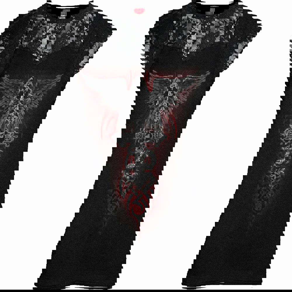 Lace Layered Cap Sleeve Top Black is made of mainly 95% Viscose 5% Elastane, Jersey using skin friendly, Azo-free, Reactive dyes.