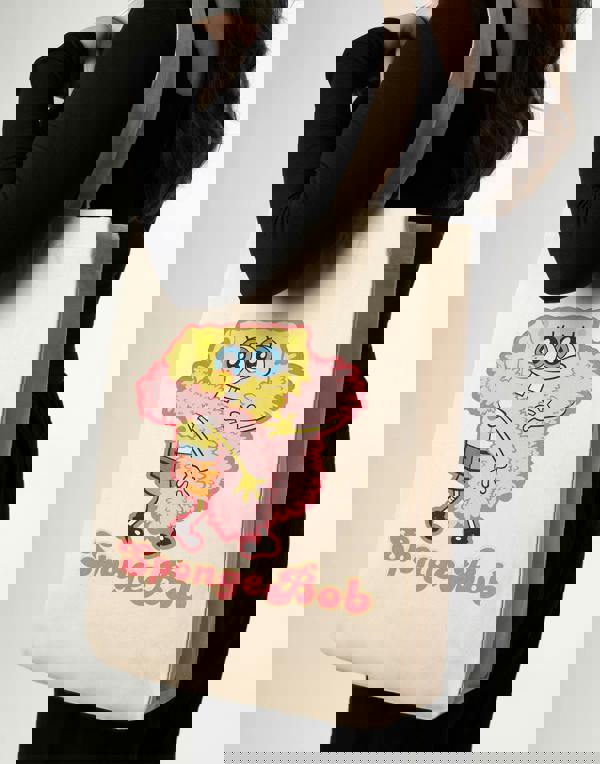 This tote bag features a classic cartoon design showcasing the beloved character SpongeBob, making it a must-have for fans of all ages.