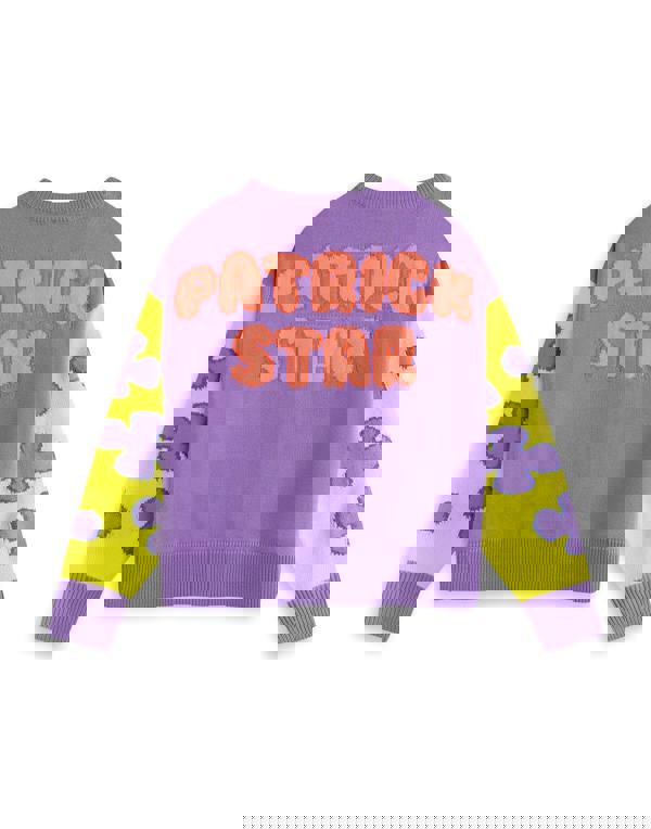 The vibrant purple colour is complemented by yellow accents, showcasing a bold Patrick Star graphic that adds a fun touch to your outfit.