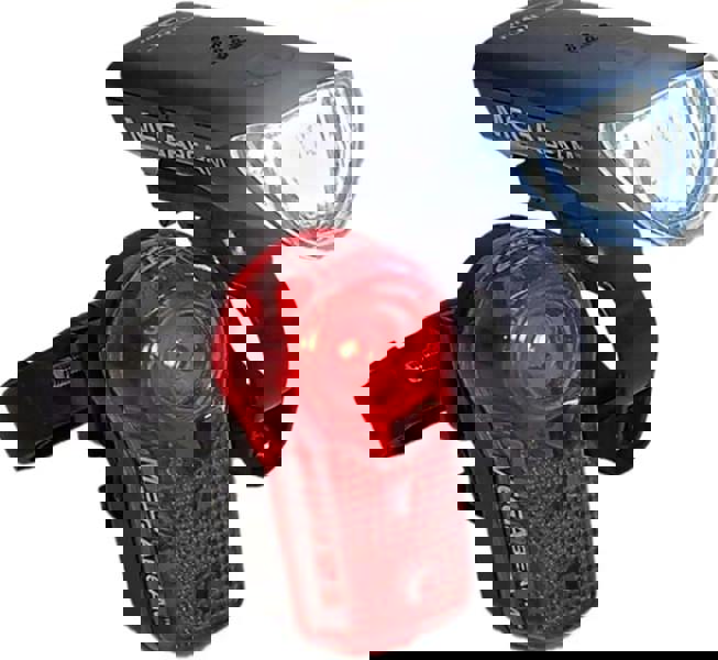 BRIGHTNESS: This light set is visible up to 500 metres. The front light has 60 Lumen 5 x MEGA beam white LED's and the rear light has 20 Lumen 3 x MEGA beam red LED's including 0. 5 W.