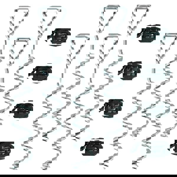 From SPORTNOW, this 4-piece Trampoline Anchor Kit is designed to help keep outdoor equipment securely in place when the weather turns. Made from galvanised steel with a silver finish, each spiral stake twists into the ground by hand for a firm hold, helping to stabilise your trampoline against strong winds without the need for tools.