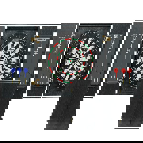 Each cabinet door features a scoreboard, making it simple to track points as you play and settle the winner. Crafted from tightly packed sisal fibres, the bristle dartboard is suitable for everyday use. When you are finished, simply close the cabinet doors to help prevent dust accumulation and keep the set neatly stored.