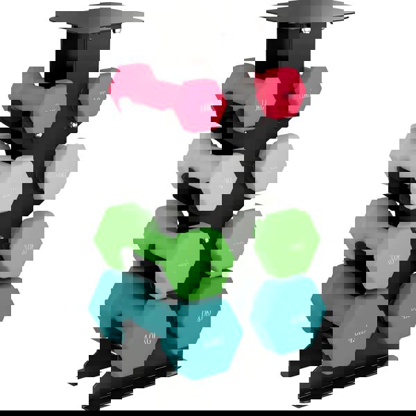 Switch up your fitness routine, adding muscle building to your workout. This SPORTNOW weights dumbbells set, which includes two 4kg, two 3kg, two 2kg and two 1kg hand weights and a dumbbell stand. Its hexagonal shape stops the weights from rolling away. Non-slip handles give you a secure grip, whilst the plastic covering ensures your floors don't get damaged – great for home workouts. Turn any space into a gym zone, staying fit and active.
