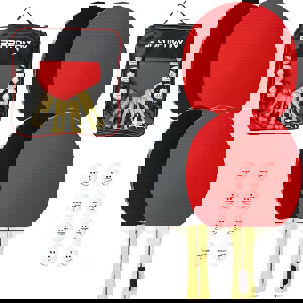 Fancy a game of table tennis? SPORTNOW's paddle set has you covered. With four rackets and eight balls, it's great for solo rallies or competitive doubles. Flared handles offer a secure, comfy grip, so you stay in control through every game. It also comes with a padded case to keep everything protected – take it from home to the office and beyond. Fun, fast-paced and great for all ages, it's time to serve up some serious action!