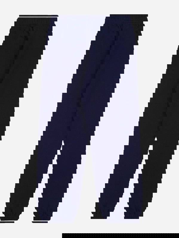 Sporty & Rich kids H&W crest joggers in navy. The design includes crest and New York print details, with “Est. 1994” text. Made from a cotton and polyester blend.