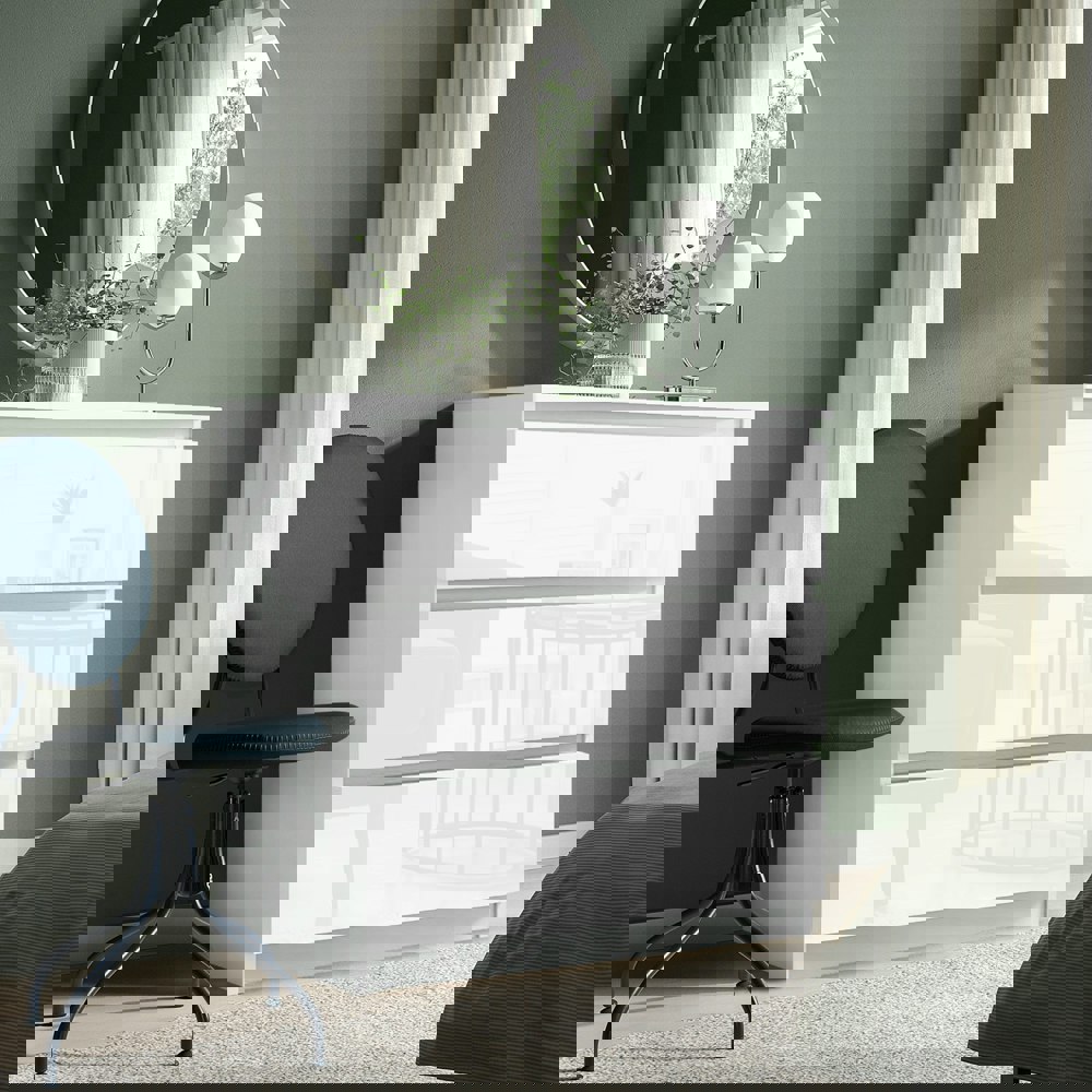 The Carlton chest of drawers features gloss drawer fronts with a matt frame, allowing it to seamlessly complement any room or office decor.