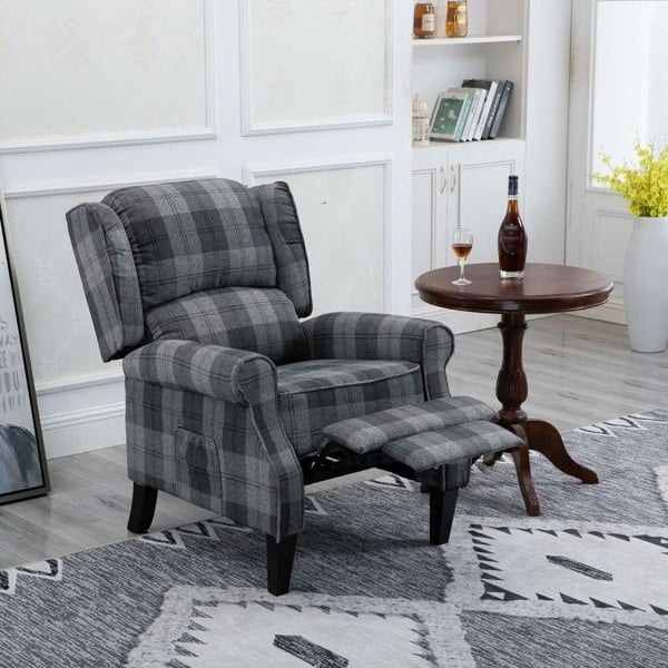 Bring a tailored look and laid-back comfort to your living room with the Luxury Life Estonia pushback recliner armchair. Upholstered in grey tartan fabric, it pairs a classic pattern with an easy, streamlined reclining action that keeps the mechanism out of sight.
