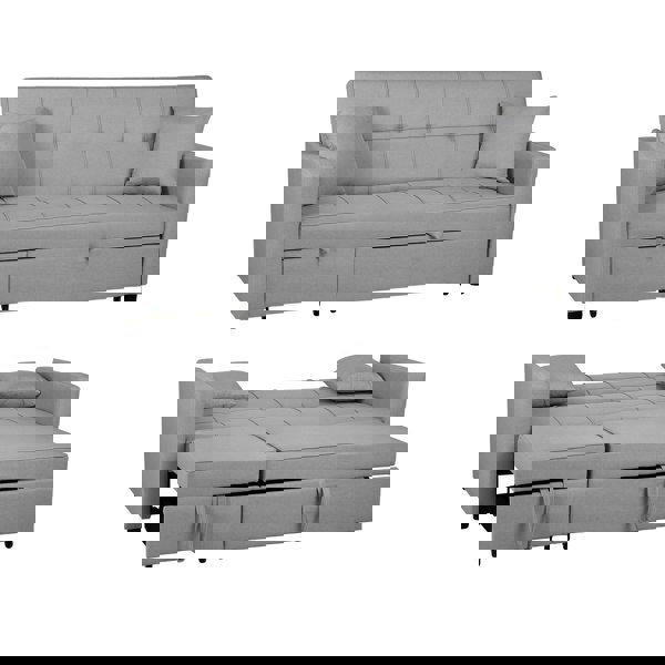 Malthe Linen 3 Seater Pullout Sofa Bed in Light Grey