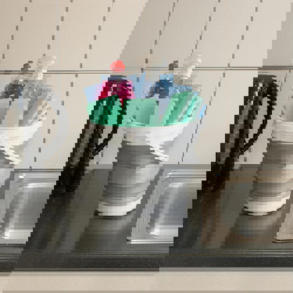 This collapsible bucket features a strong and durable plastic handle and folds down to a compact size for ease of storage and transportation. If space is at a premium then this bucket is for you, it is ideal for camping, caravanning, fishing, car washing or even just household chores. When not in use it folds flat and can be stored under the sink or even hung up using its own handle. 2 generous sizes to choose from, 5 or 10 litre.