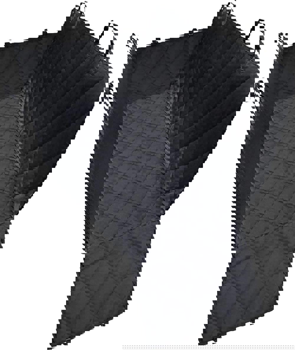 The quilted pet car seat cover with side walls is made from waterproof 600D Polyester. The cover is designed to protect the seats of your car from both liquids and scratches when transporting your pets. The cover is quick and easy to install, simply loop the adjustable quick release clips around the head rests of both the front and back seats and the cover will stay firmly in place. There are seat belt openings built into the cover so that passengers are still able to travel safely in the back seat at the same time as transporting your pets. The addition of side walls means that your car doors are also protected from scratches, when your pet is safely in the car simply zip up the side walls. The cover is washable making it easy to keep clean and free from hair. The cover is suitable for use in most types of car thanks to the length adjustable clips. The cover can be used hammock style or simply as a seat or car boot cover.