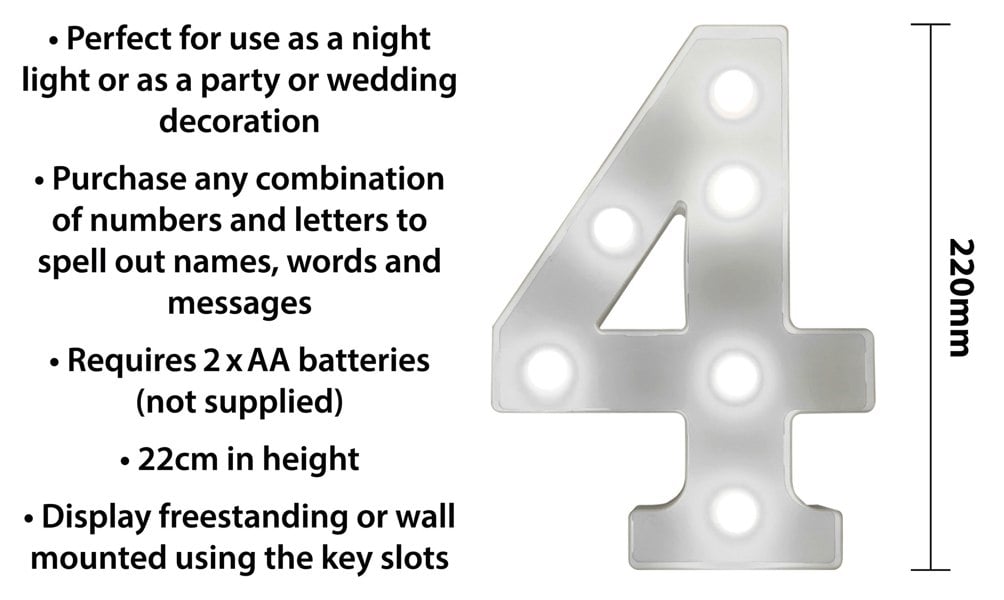 St Helens Battery Operated 3D LED Number 4 Light