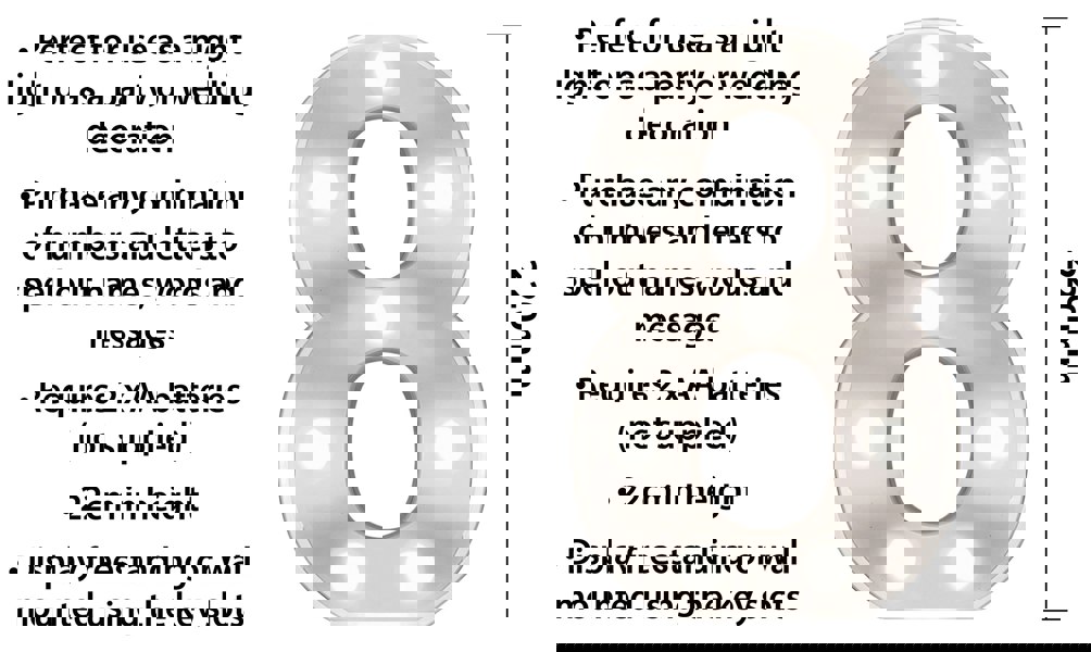 These battery operated 3D LED number lights are perfect for use as night lights or as party and wedding decorations.