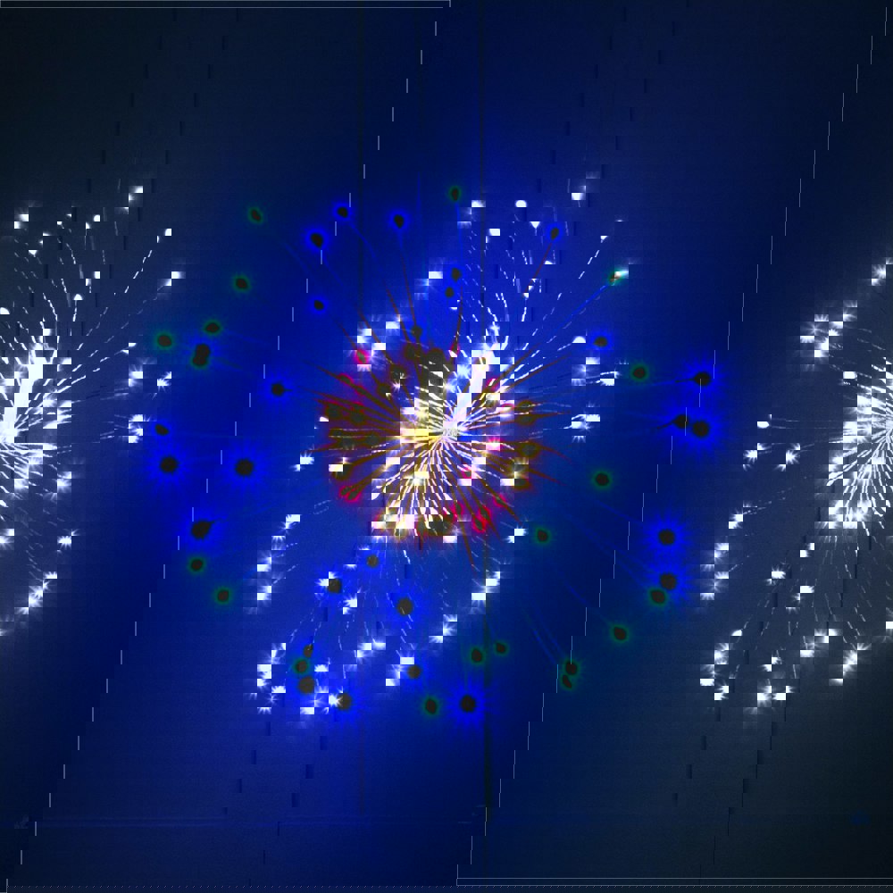 When lit, a fabulous firework-style light show is created. You can move the 80 LED light strings into whatever position you like to create different shapes and effects. The light is also supplied with a handy remote control.