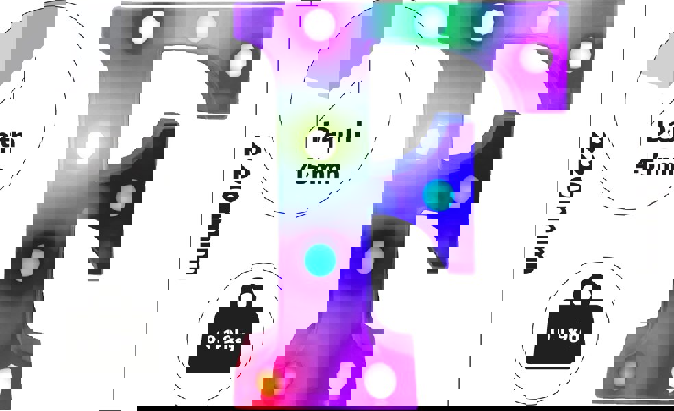 Introducing our vibrant RGB LED sign, a versatile addition to any celebration or ambiance setting. Powered by 2 x AA batteries (not included), this sign offers convenience with an on/off switch for easy operation. It comes complete with a user-friendly full-function timer remote control (powered by 1 x CR2025, not included), allowing precise control over colour selection, 9 program options, speed adjustments, and auto mode. Perfect for creating captivating night lights, enhancing parties, weddings, anniversaries, and birthdays, this sign provides endless opportunities to spell out names and ages with colourful flair. Elevate your events with the dynamic lighting possibilities of our RGB 9 LED sign.