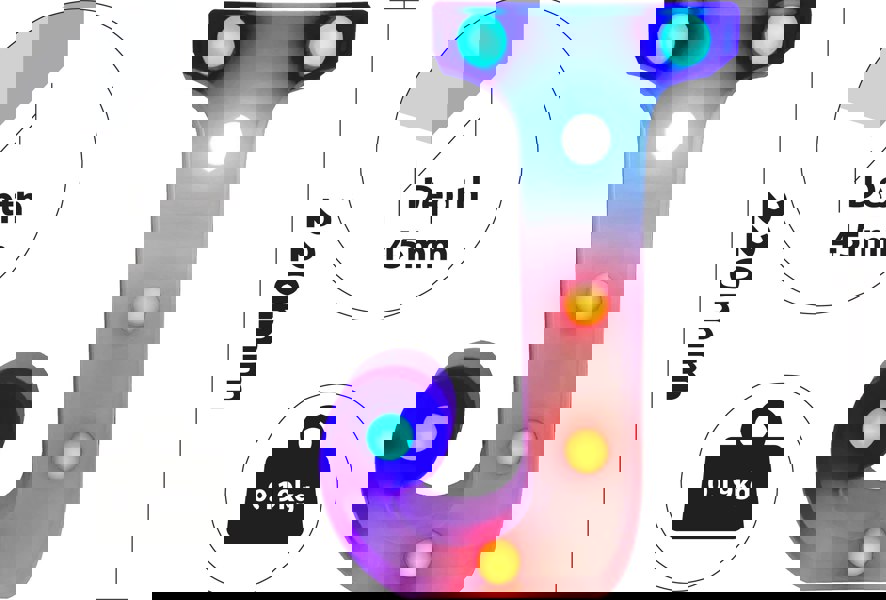 Introducing our vibrant RGB LED sign, a versatile addition to any celebration or ambiance setting. Powered by 2 x AA batteries (not included), this sign offers convenience with an on/off switch for easy operation. It comes complete with a user-friendly full-function timer remote control (powered by 1 x CR2025, not included), allowing precise control over colour selection, 9 program options, speed adjustments, and auto mode. Perfect for creating captivating night lights, enhancing parties, weddings, anniversaries, and birthdays, this sign provides endless opportunities to spell out names and ages with colourful flair. Elevate your events with the dynamic lighting possibilities of our RGB 9 LED sign.