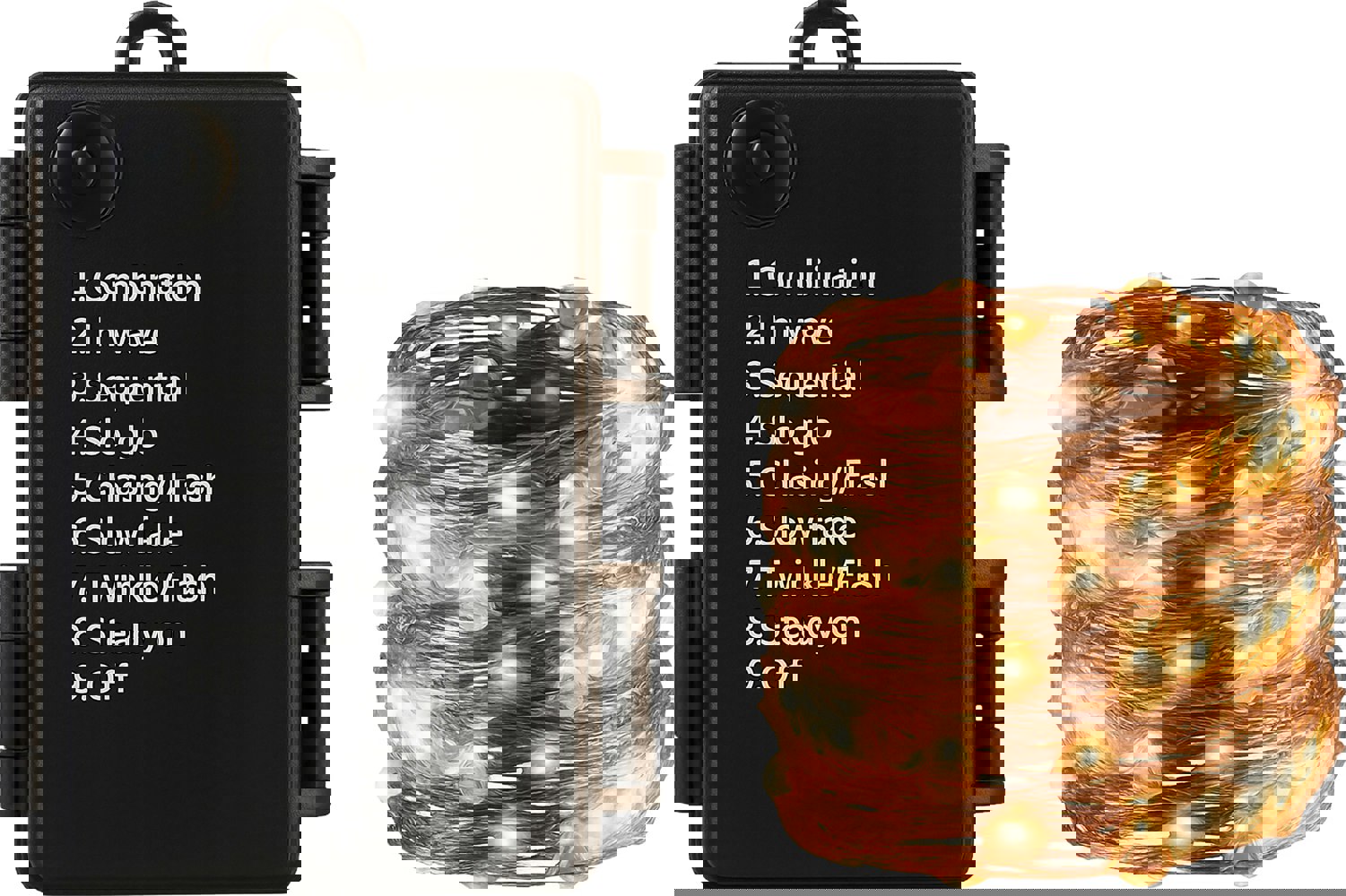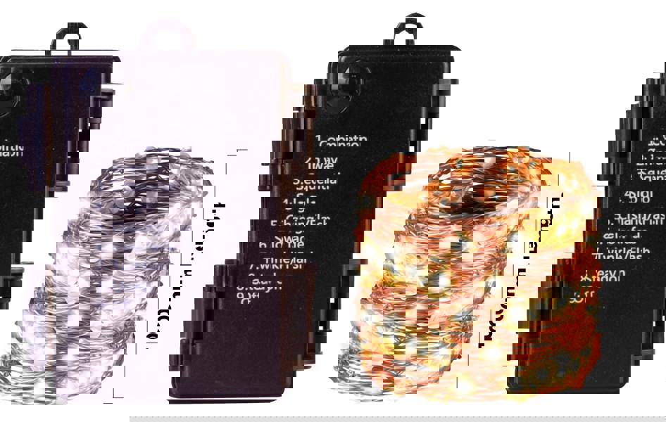 St. Helens Home and Garden 10m Copper Battery 100 LED Fairy String Light With Controller. For Indoor and Outdoor use. Use at Christmas, Wedding parties and for Decoration.