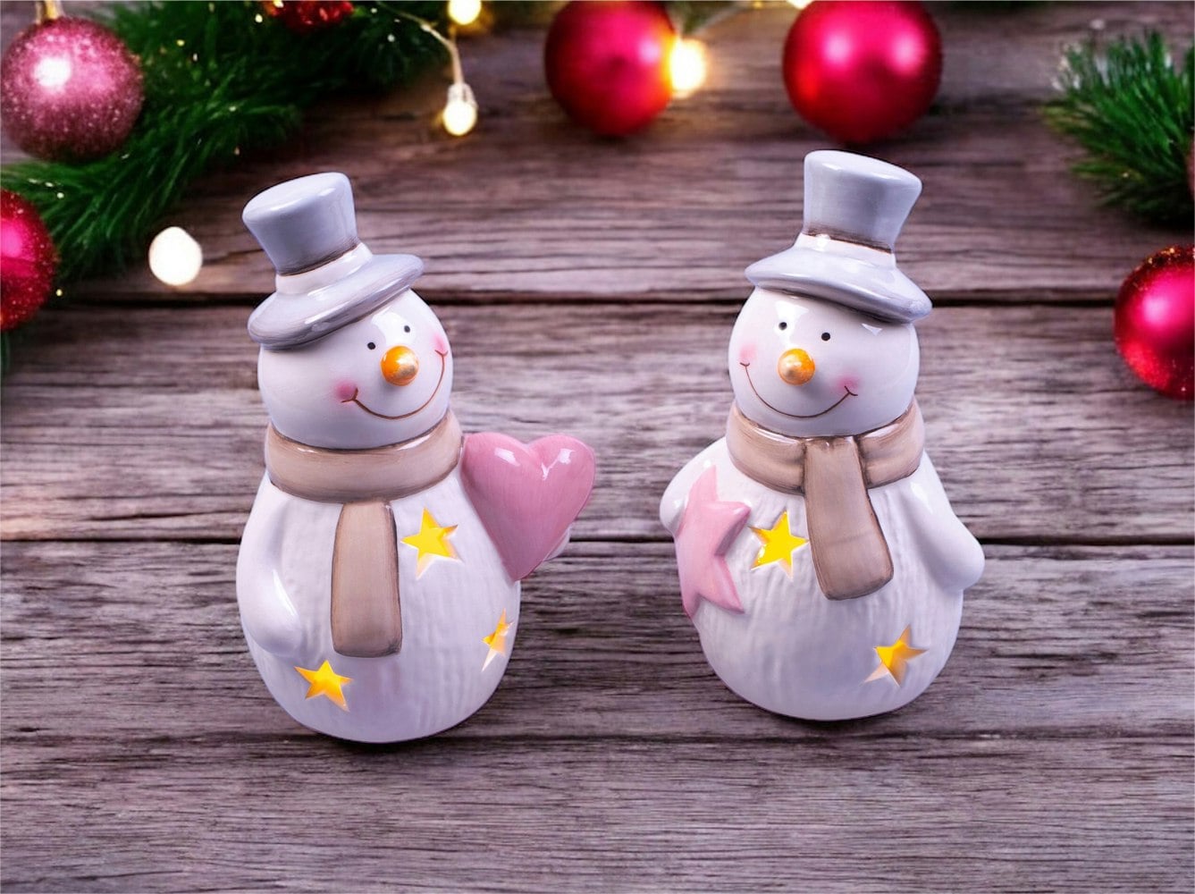 Delight your family and friends this Christmas by introducing these super cute, ceramic light-up snowmen to your home. When lit, these snowmen will provide festive and cosy ambient lighting.