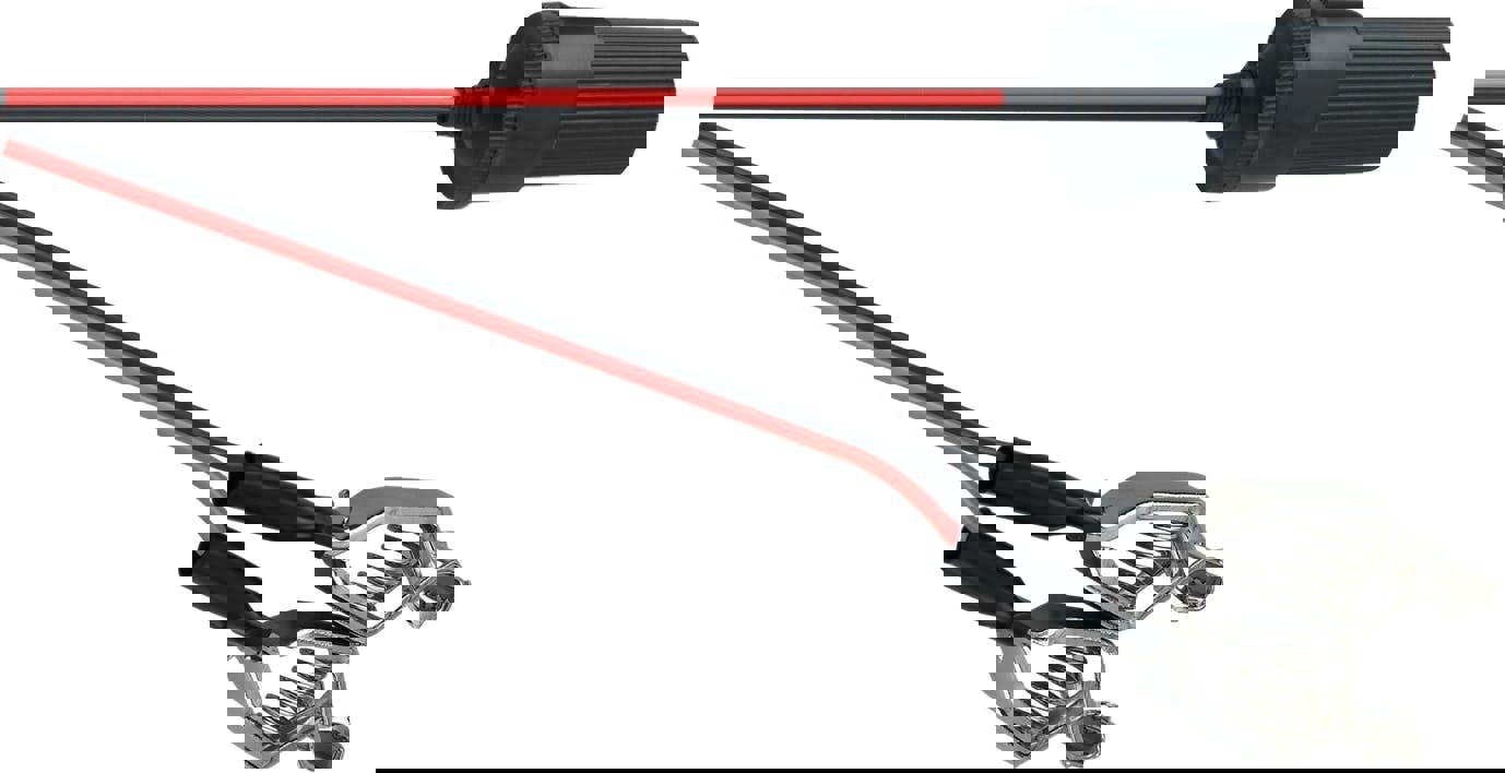 Provides a cigar lighter socket where none is fitted or when power is required outside the car. Heavy duty crocodile clips take power directly from the battery. Max. power 10 A, 600 mm long.