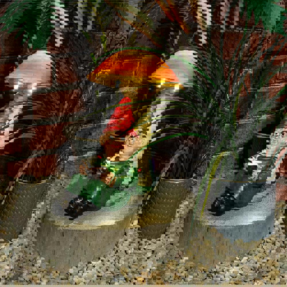 My name is Gnomette, I am abeautiful and quirky solar garden ornament, I'm alittle bit special thanks to mysolar light which will brighten up your garden and lawn at night,I am so economical, mylight charges up during the day by absorbing sunlight, aren't I clever. I'm a verycharming ornament painted in beautiful, vibrant colours and I will enhance the look of any garden whether it be day or night, you will be the envy of your neighbours thanks to me. My bodyis made from durable resin making me waterproof and able to withstand harsh weather when placed outdoors, I really don't mind the rain. I don't know if you know this but I'm part of a collection, check out my family members;Gianna, Gnomeo, Gabriella and Giselle