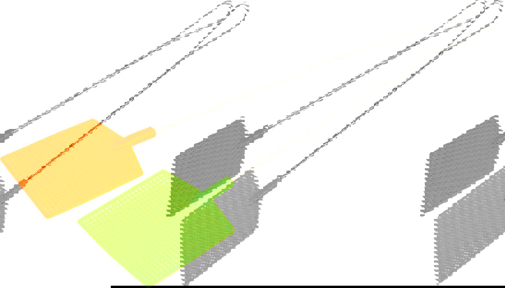 Get rid of unwanted insect visitors from your home, garden or office with this pack of 2 swatters. The fly swatters are lightweight and easy to use, simply hold the loop handle, get ready, aim and swat!