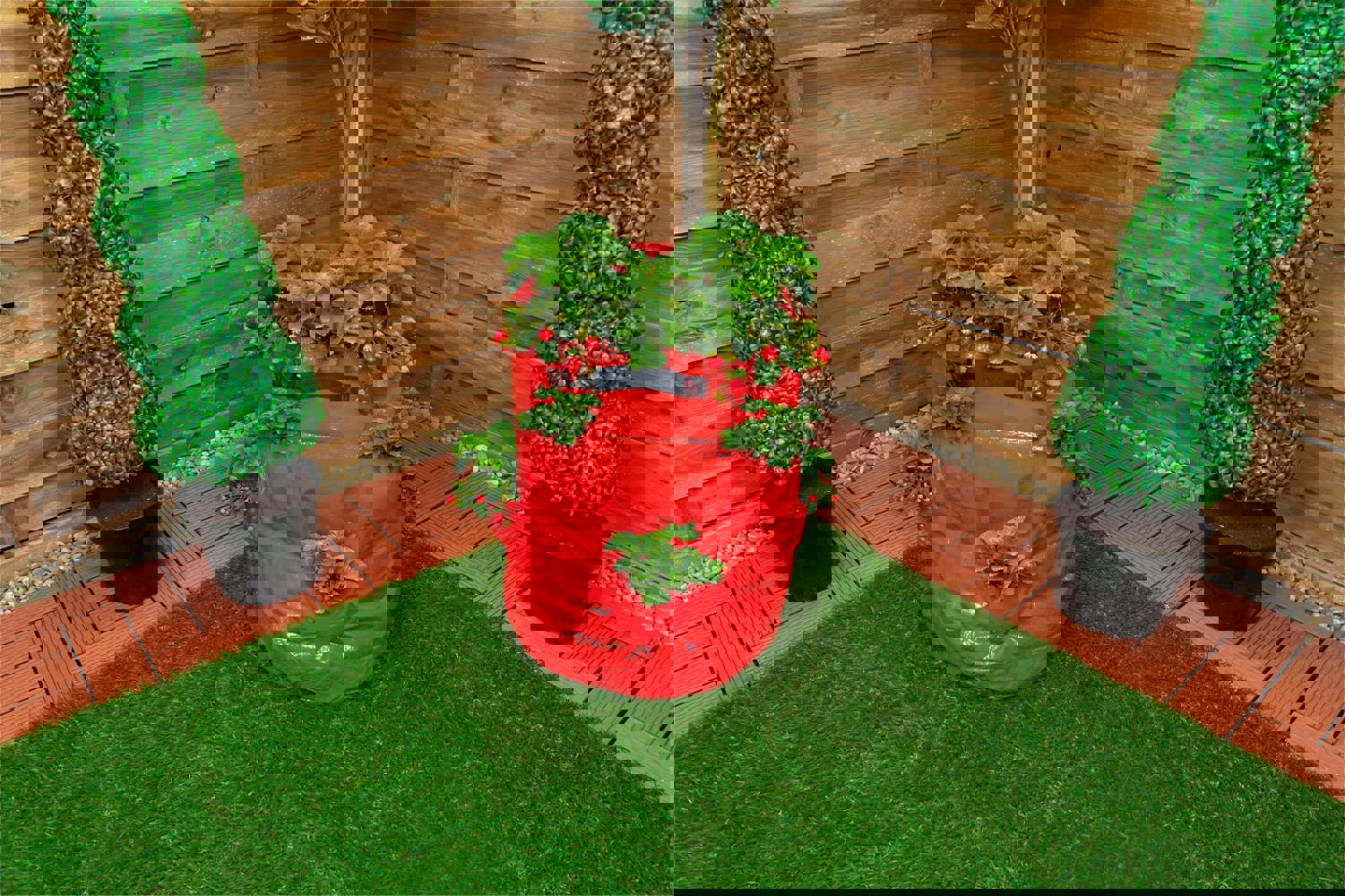 These Strawberry Grow Bags are ideal for planting a variety of strawberries when your outdoor gardening space is limited. They are perfect for gardeners who do not wish to create permanent vegetable patches in their garden. The bags are designed with durable handles so you can easily manoeuvre the bags when necessary . The bags are designed with several side pockets for easy access allowing you to quickly and accurately determine whether your strawberries are ripe and ready for harvest. Strawberry grow bags allow the roots to breathe sufficiently, prevent roots from circling and improve overall root structure, helping you to grow healthier plants and harvest larger yields! Suitable for indoor and outdoor planting, perfect for balconies, patios, gardens and other small spaces. The bags can also be used for growing herbs. The bags are re-usable and can be utilised year after year. ;Generous;43L Capacity.